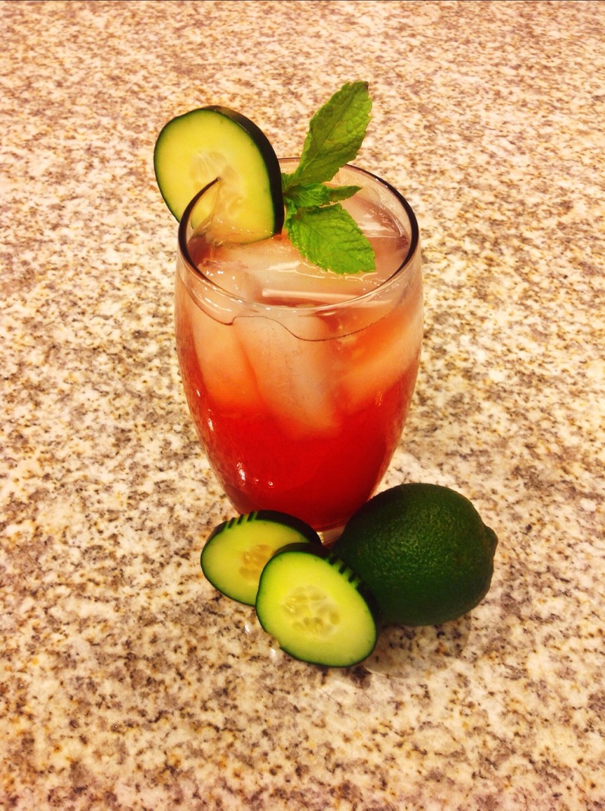 Today, I’m featuring a fresh and flavorful drink, perfect for the start of summer! The cucumber and mint flavor refresh the palate, and the cranberry and lime keep the party going. This concoction will have you feeling good in no time.