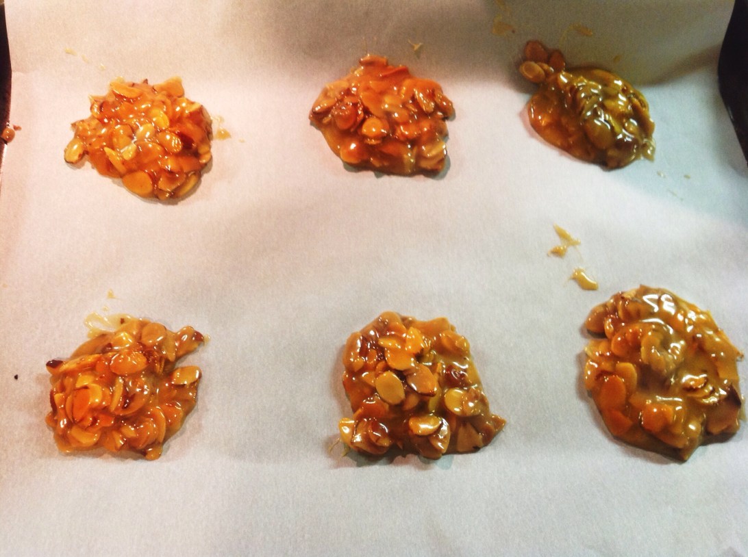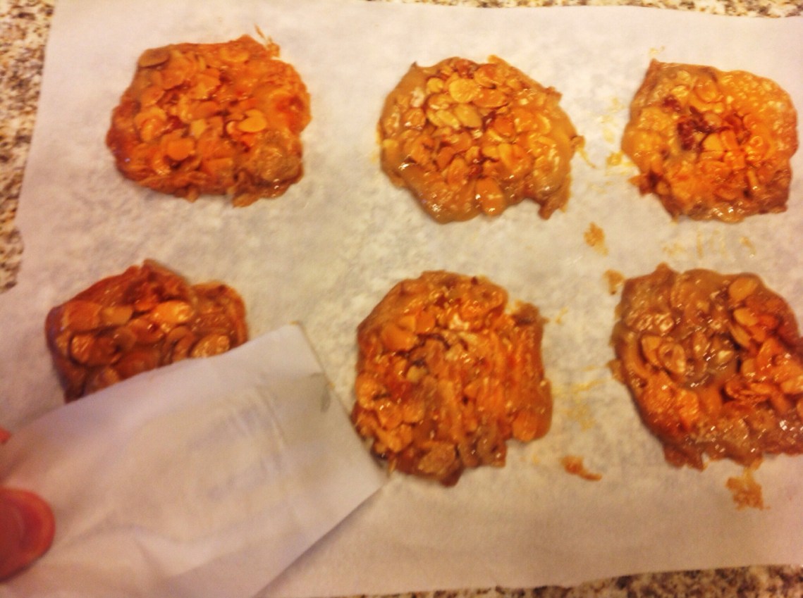 In Dallas, there is a great little cafe called The Black Forest Cafe that sells amazing Almond Florentine cookies. They have been one of our guilty pleasures for the past year, and they are tasty enough to drive 30 minutes from home to pick them up. This weekend we decided to give the recipe a try.
