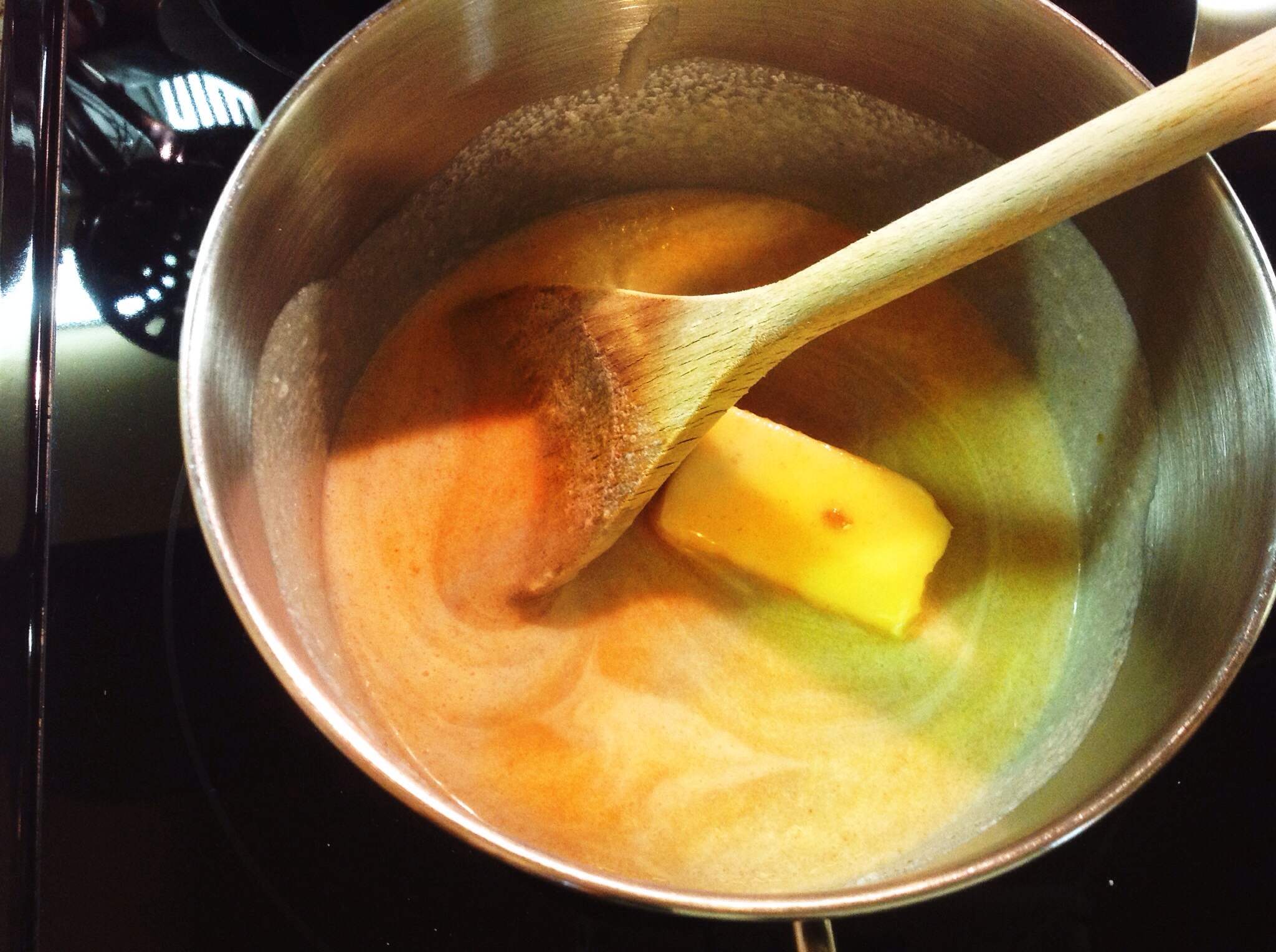 SERIOUS WARNING: You are dealing with molten sugar and butter here. My hand has some serious battle wounds from a whisk gone rogue (hence the new name for these cookies). Be very careful when handling the batter. By the string of profanities coming from my mouth as I ran to the kitchen sink to cool my hand, you would have thought Gordon Ramsey was in my kitchen.
