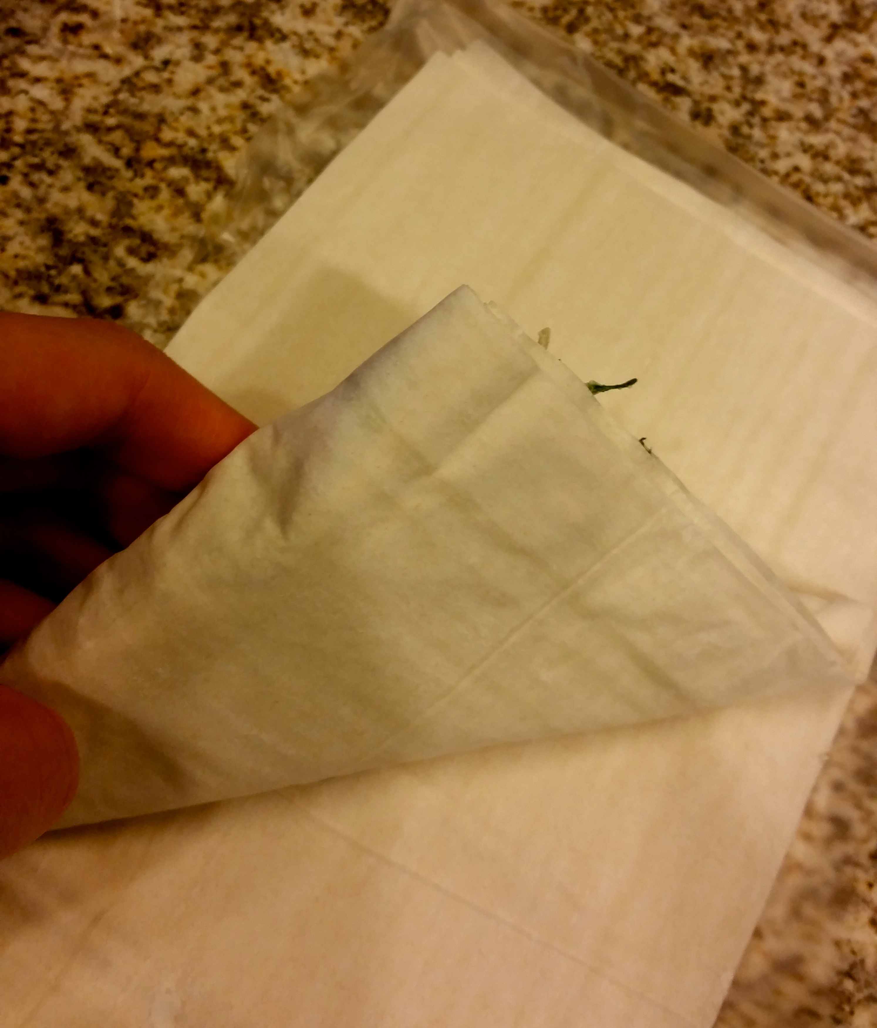 5. Using three sheets of fill per pie, fold over (like a flag) to create a triangle shaped pocket.