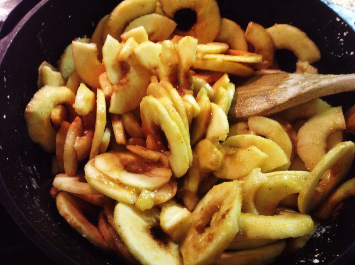 14) Allow to cook until apples are more tender, but NOT mushy. They should still have a little crisp to them. The mixture should be slightly shiny, and start to thicken…don’t worry if it still seems a little too runny, the 10 T of corn start will thicken as the pie cooks.
