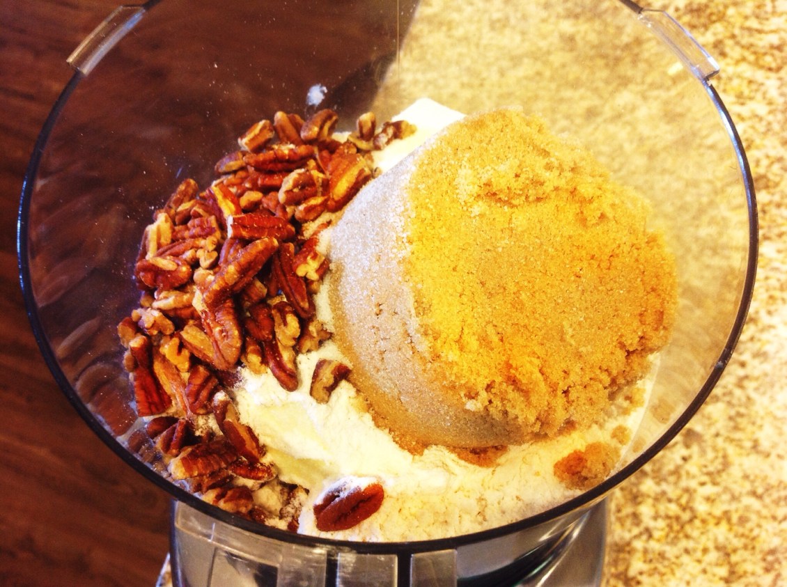 19) In a food processor, add all of the ingredients for the topping. Place your food processor as close to the edge of the counter as possible because you like to live on the edge, and pulse until crumbly.