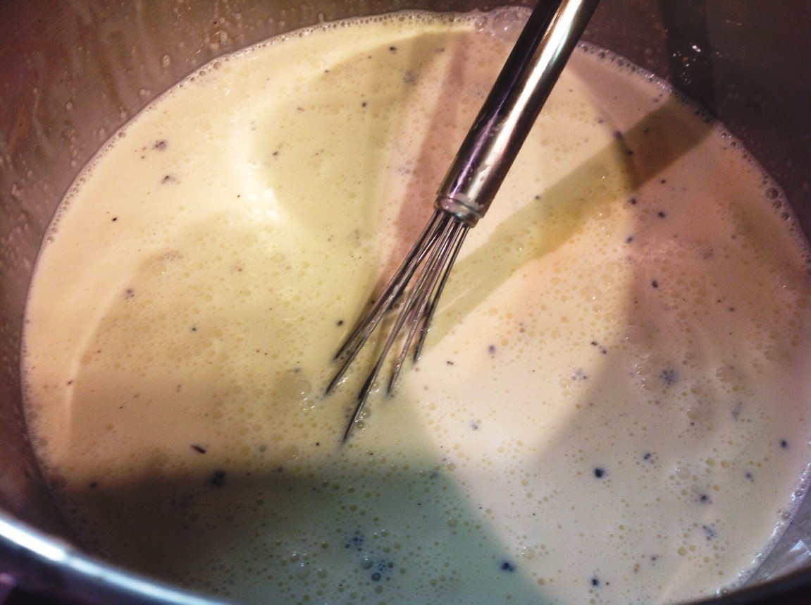 10) Remove the vanilla pod from the pot, and separate about 1 cup of the mixture into a container and place in the freezer (this was recommended to me…I don’t know what the point of this is, but I was told “it was science”…not knowing the chemical formula of ice cream, I was hesitant to disregard this step. It really could be completely unnecessary…I don’t know).