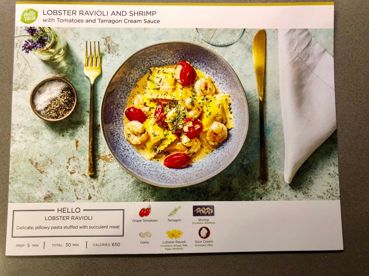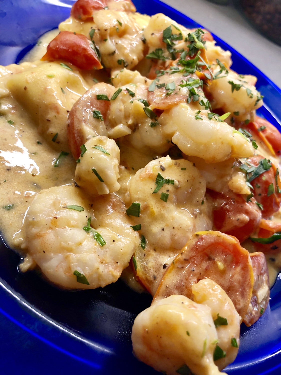 It’s made up of permafrost lobster ravioli, small plum tomatoes and shrimp and the big bites, and it is all thrown together with a garlic tarragon cream sauce. Super simple, but really packed with flavor.